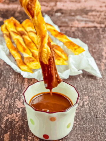 🍫 Twisted Puff Pastry Sticks with Chocolate Dip Sauce
