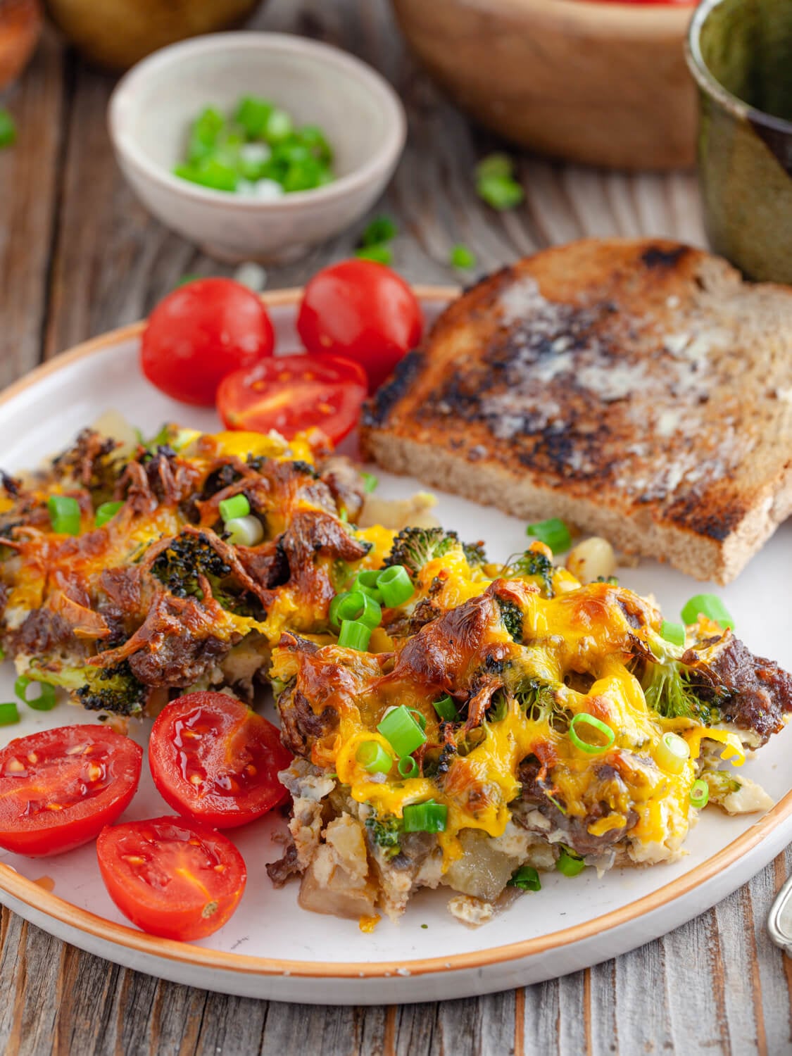 Slow cooker option: Layer the sausage, potatoes, and broccoli in the bottom of a 4-quart slow cooker. Pour the whisked eggs and cheese mixture over the top. Cover and cook on low heat for 4–6 hours, until the eggs are fully set.