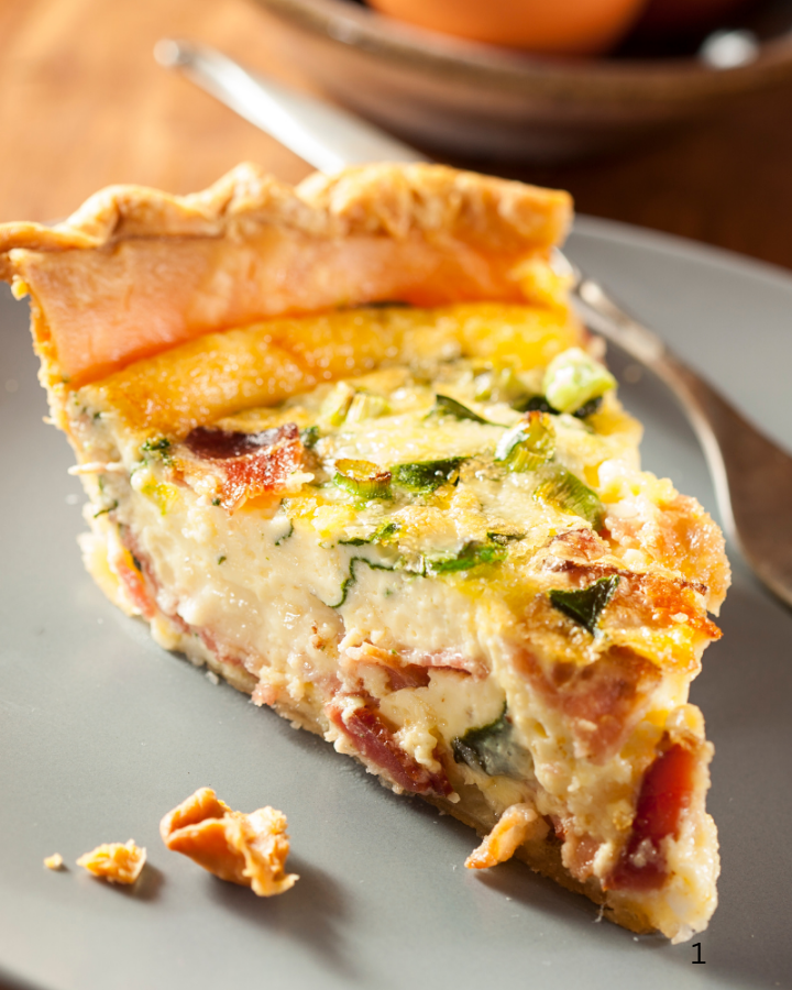 Whisk eggs and milk, stir in crispy bacon, sautĂ©ed spinach and onions, and shredded cheese. Pour into a prepped pie crust and bake until golden and set. Thatâs the formula: prep â mix â fill â bake â slice â serve.